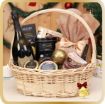 Beige Noel este un cos cadou deosebit ce contine specialitati dulci precum panettone, praline de ciocolata belgiana, trufe, caramel, turta dulce si multe altele. Acesta mai contine si delicatese cum este terina de porc cu susan. Toate acestea sunt acompaniate de o sampanie rafinata si o cafea aromata. Cosul este decorat manual si transformat intr-un cadou special pentru sarbatorile de iarna!