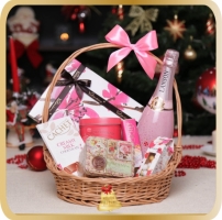 Pink Christmas este un cadou deosebit, ce contine specialitati dulci, precum praline fine, trufe, baton si tableta de ciocolata, toate acompaniate de o champagne rose. Cosul cadou este ambalat si decorat manual, in spiritul Craciunului, gata de a fi oferit cu ocazia sarbatorilor de iarna.