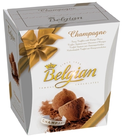 Trufe pudrate cu cacao si crema fina de sampanie. Clasa si rafinament intr-o singura cutie.